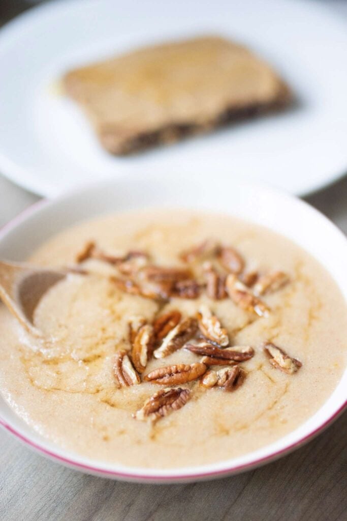 Top your bowl of cream of wheat with a drizzle of honey, a pat of butter, and 1/4 cup of pecans for a “butter pecan” version.