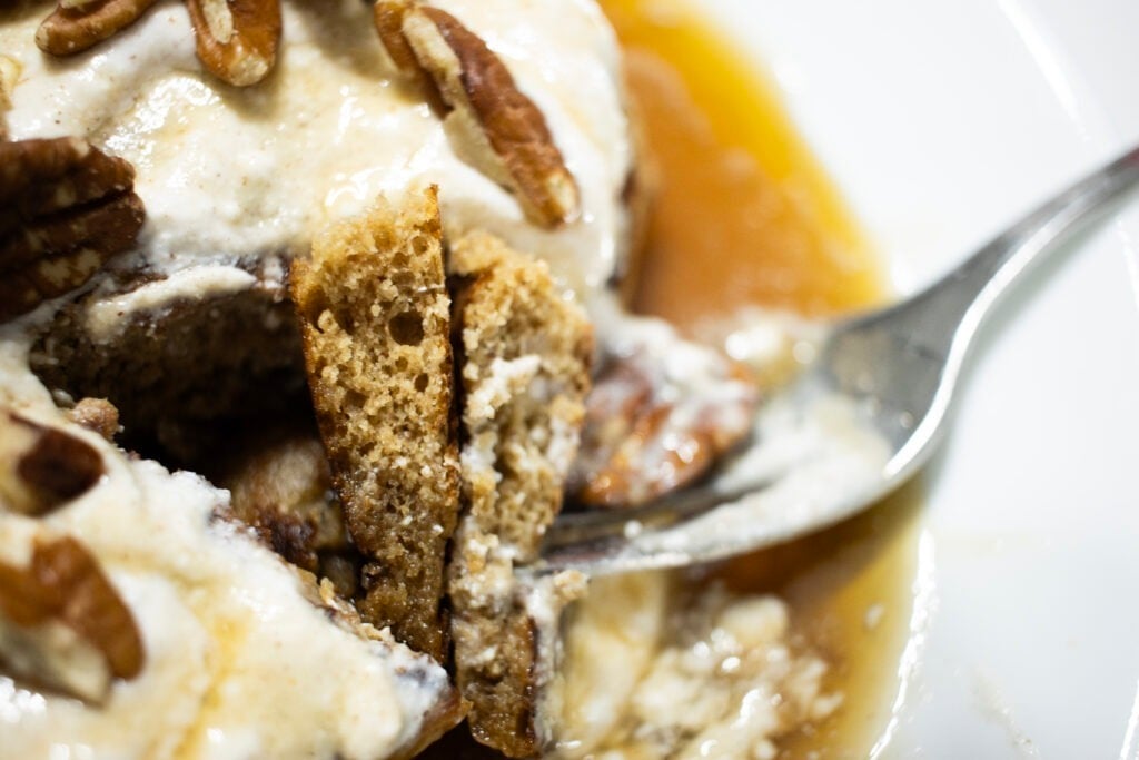 Serve warm topped with pure maple syrup. We love topping ours with ricotta cheese and pecans!