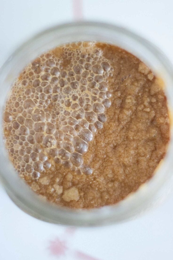- Remove 1 cup of starter for your recipe or move the starter to the fridge if not ready to use.